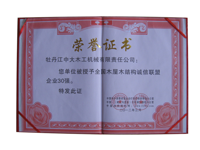 企业30强荣誉证书